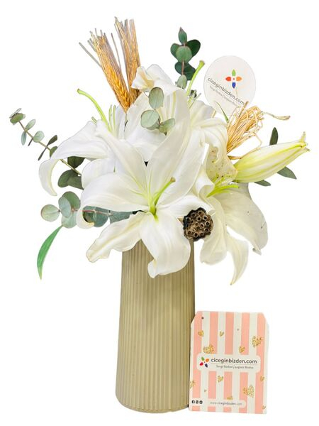 Seramikte Lilyum ve 7 Kırmızı Gül