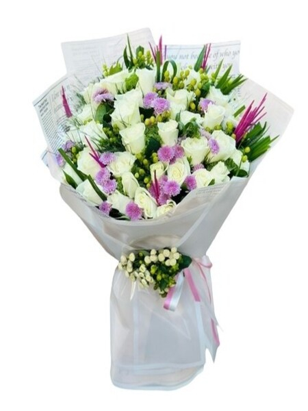 Beyaz Lilyum ve Beyaz Gül Buketi
