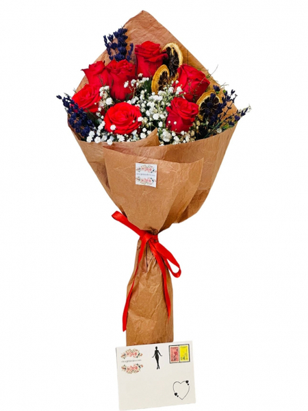 Kıvrışık Kağıtta 5 Kırmızı Gül Buket