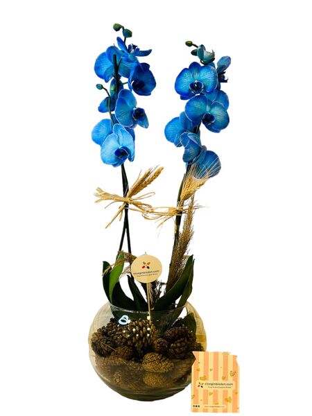 Cam Fanusta Çift Dal Mavi Orkide