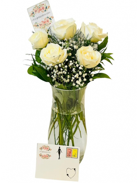 Beyaz Lilyum ve Beyaz Gül Buketi