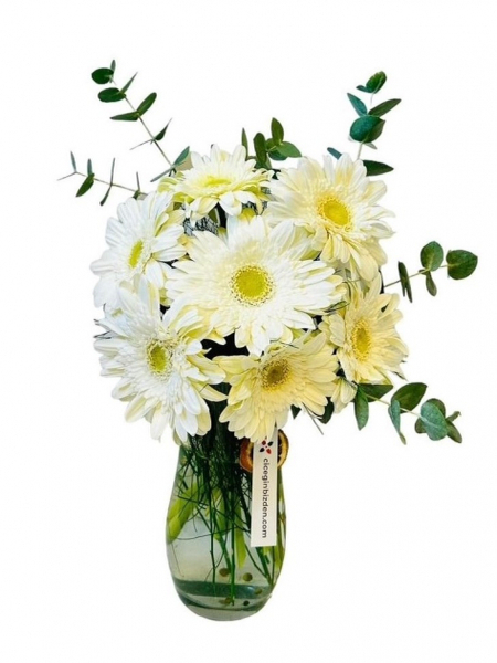 Cam Vazoda Beyaz Gerberalar ve Güller