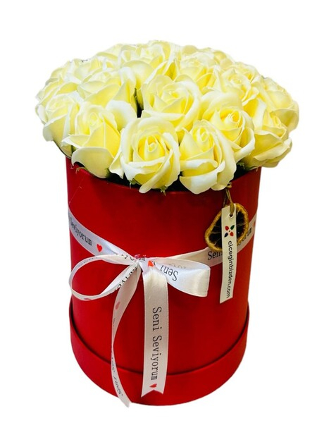 Kırmızı Kalpli Kutuda Beyaz Güller