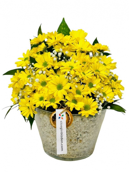 Konikte Beyaz Papatyalar ve Sarı Gerberalar