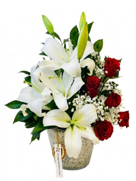 Vazoda Lilyum ve 3 Kırmızı Gül
