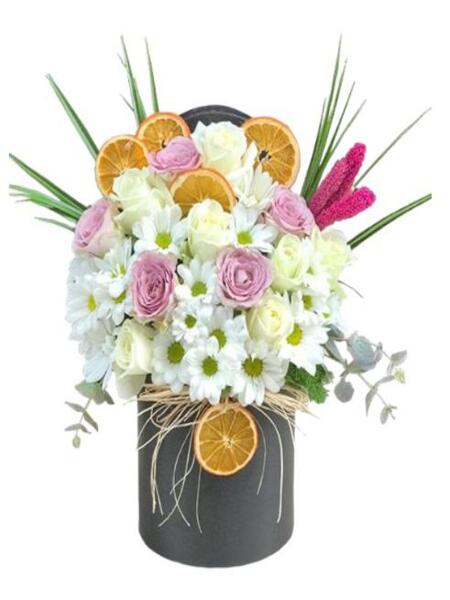 Yuvarlak Kutuda Beyaz Papatyalar