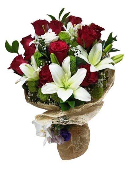 Vazoda Lilyum ve 3 Kırmızı Gül
