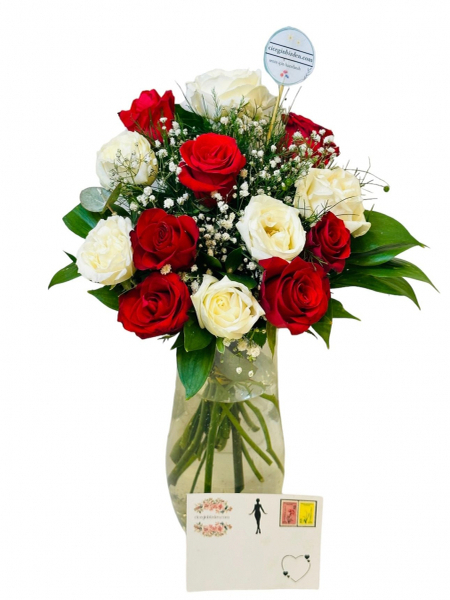 Vazoda Pembe Beyaz Gerberalar ve Güller