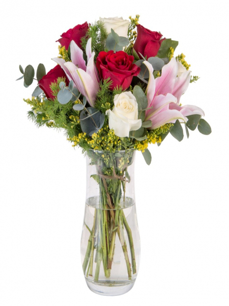 Vazoda Lilyum ve 3 Kırmızı Gül