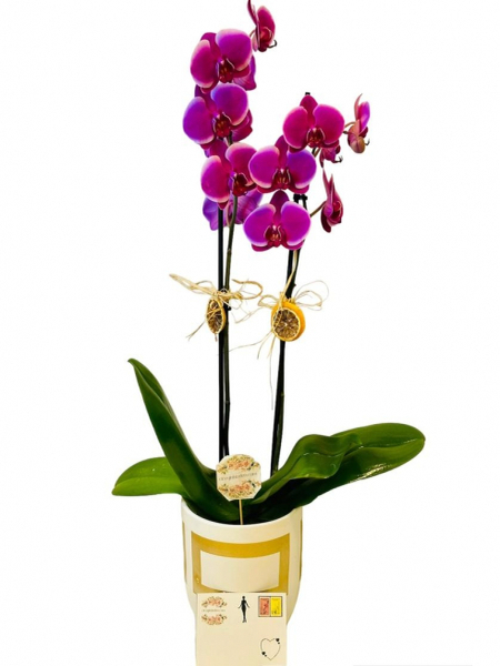 Desenli Saksıda Mor Orkide