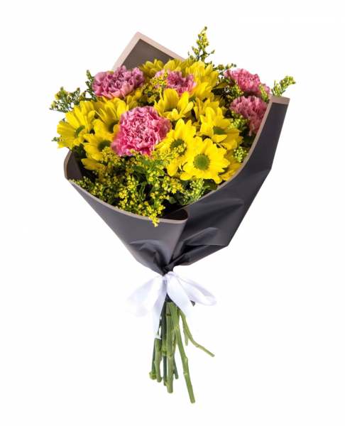Sarı Papatya ve Pembe Karanfil Buketi