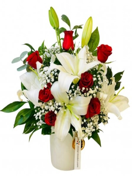 Vazoda Lilyum ve 3 Kırmızı Gül
