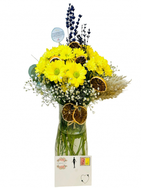 Konikte Beyaz Papatyalar ve Turuncu Gerberalar
