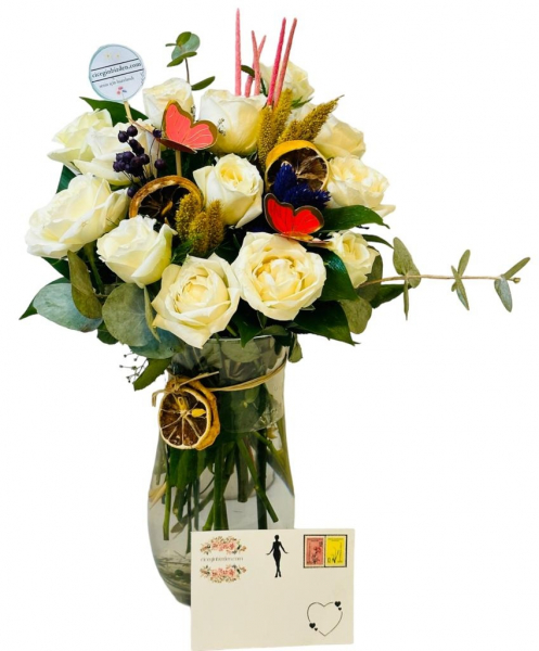 Beyaz Lilyum ve Beyaz Gül Buketi