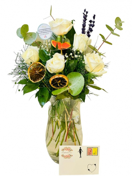 Vazoda 5 Beyaz Gül Butik Tasarım
